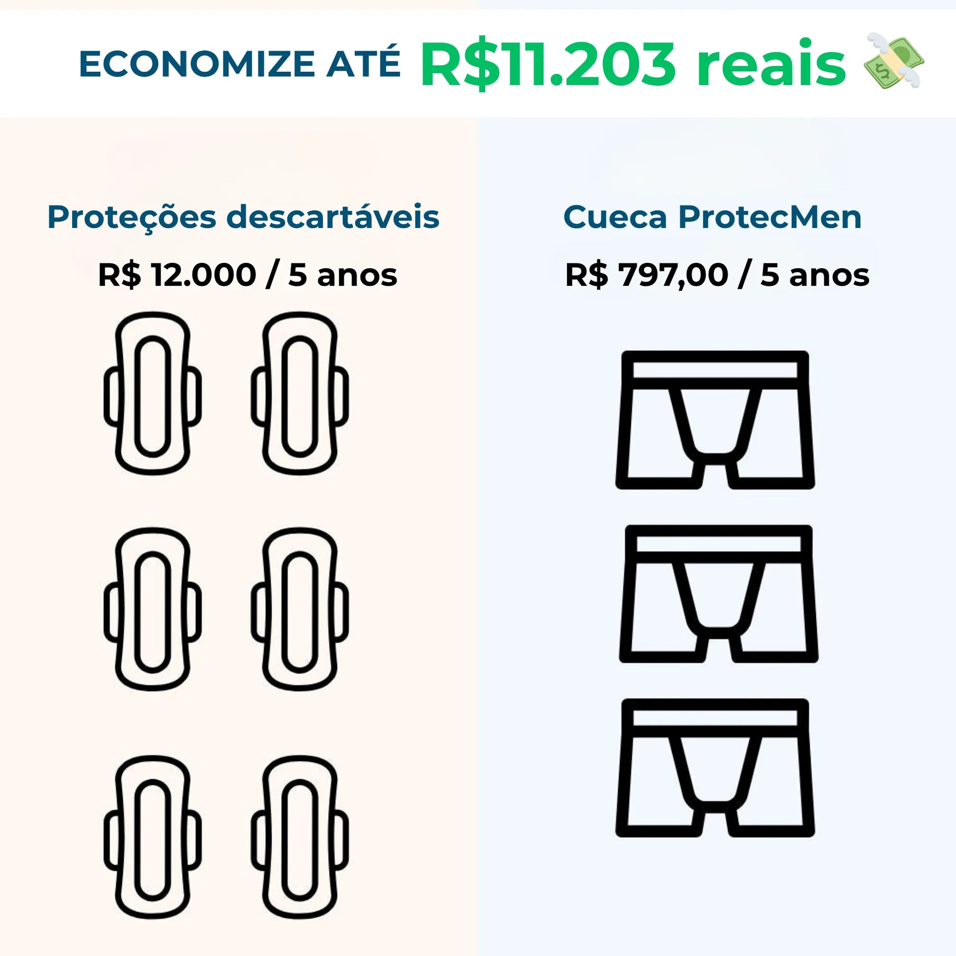 Cueca reutilizável de alta absorção que protege contra incontinência sem abrir mão do conforto.